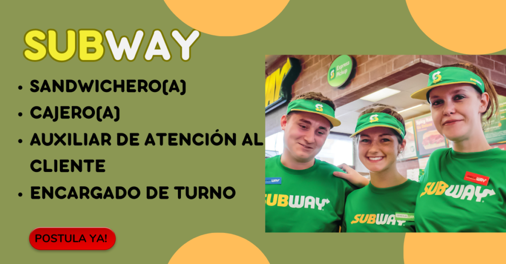 Si estás buscando trabajo en el sector restaurantero con horarios flexibles, capacitación desde cero y oportunidades de crecimiento, este artículo te explica todo sobre los empleos en Subway México: desde las vacantes más comunes, funciones diarias, requisitos, sueldos aproximados, beneficios y la forma correcta de postular.